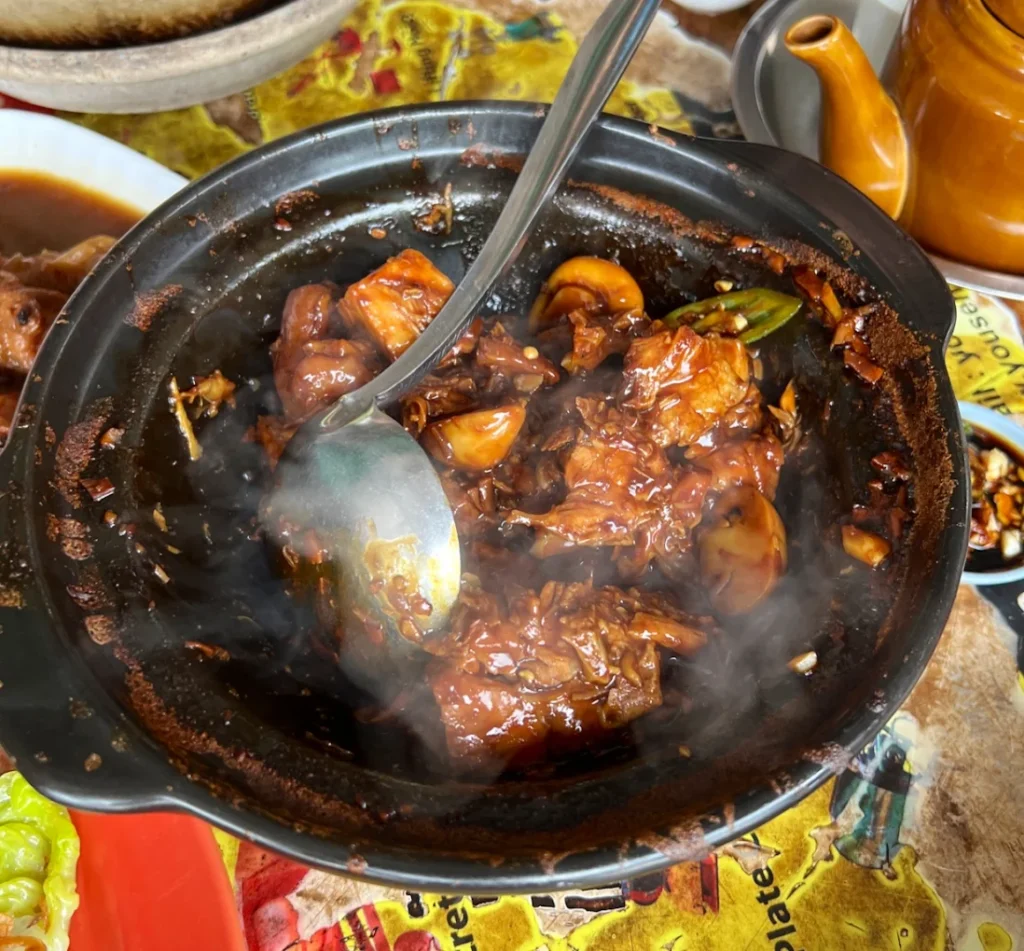 桥底那条巷子,晚上路灯昏暗却有汤香在风里游。盛发祖传从1979年就开了,是很多人答案里的“巴生桥底肉骨茶值得排队吗”。老瓦煲里汤浓而有层次,药香、骨香交织。干式版本焦香浓烈,肉香被酱汁包裹得恰到好处。三人份套餐大约 RM55,配油条、豆卜、炒油麦菜。环境虽简单,却满是怀旧气息。适合想体味古早风味、夜深后还想喝碗汤的人。走夜路到桥底,就为那碗热汤。也常有人问:“巴生肉骨茶几点开门?”“巴生肉骨茶凌晨还开吗?”在盛发,这些问题就有答案。