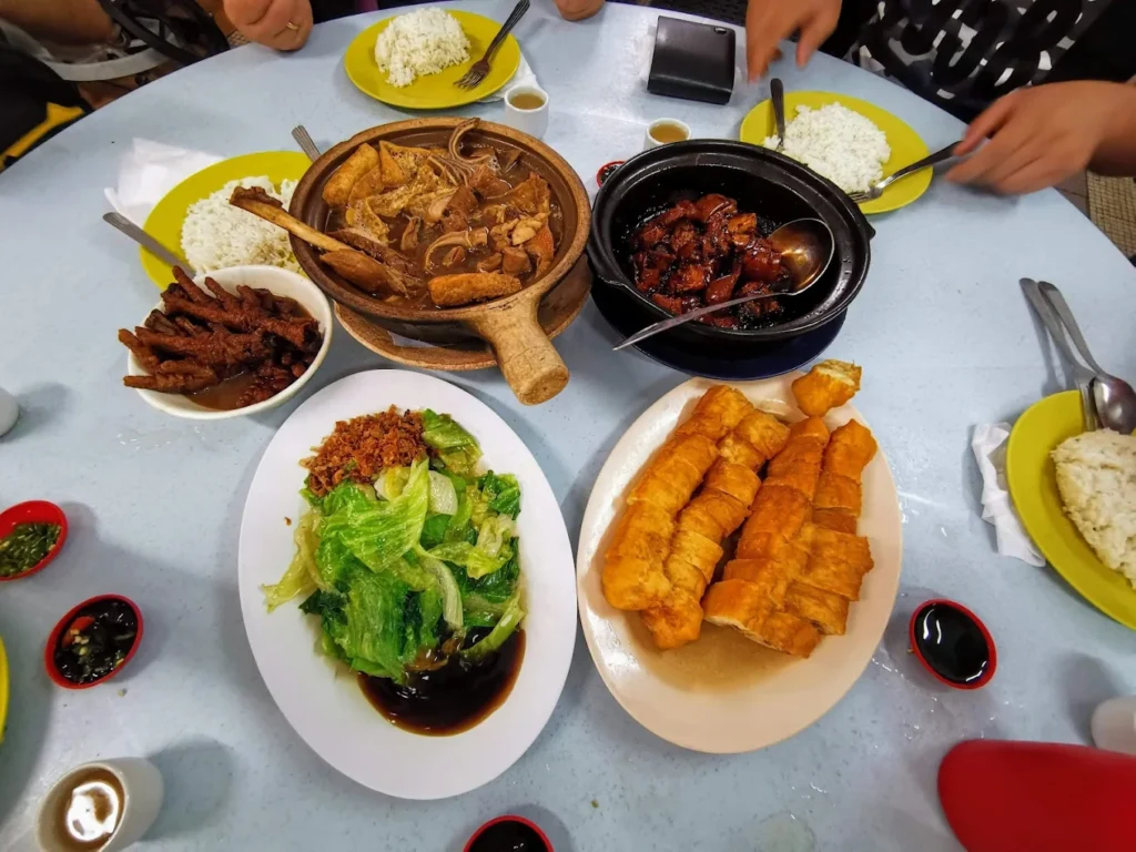 这家传统瓦煲店,会在清晨就开锅。热气腾腾的汤冒出香雾,白饭、油条、蒜蓉酱油一应俱全。汤色深暗但入口温润。干式版本加香料爆香,焦香扑鼻,是很多人说的“巴生哪一间干肉骨茶最有名?”答案之一。价位大约 RM25–35 左右。很多本地人讲:“巴生人早餐都吃什么?就是这碗汤配油条、配饭。”即使凌晨时段,灯火常常没熄,说明“巴生肉骨茶凌晨还开吗”在这里答案是肯定。这家店在很多Klang老字号肉骨茶推荐榜单里出现,是Klang地道美食中不可或缺的一环。