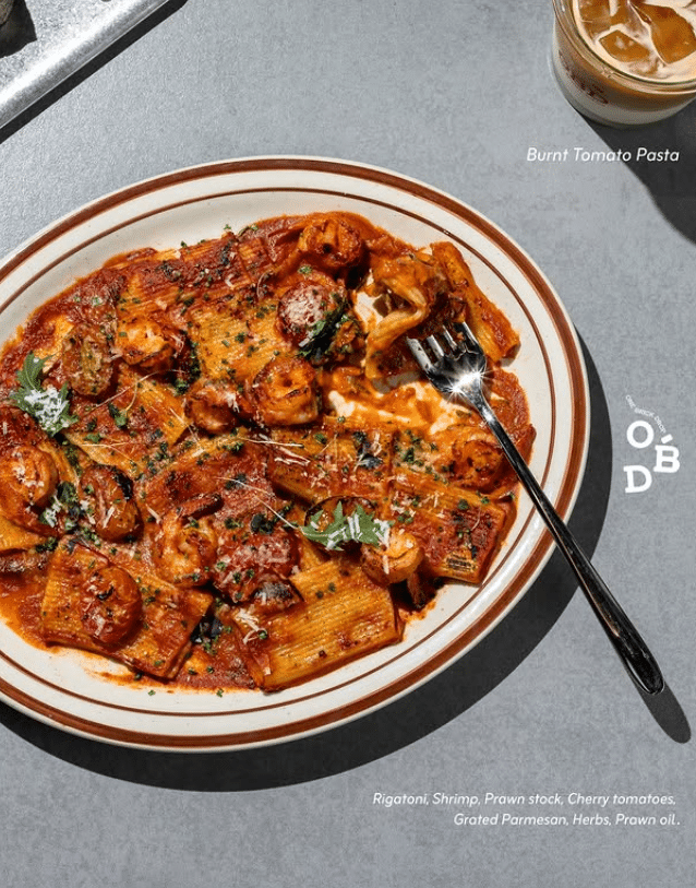 讲到吃的,很多人第一次来都会点 Burnt Tomato Pasta。原来是这样,这道 pasta 的重点不是 tomato,而是那个带一点微焦的味道,加上虾汤底,让整个酱汁变得很浓郁。面条吸满酱汁,咬下去是带一点湿润感的,不会太干,也不会水水的,尾段会有一点鲜味留在口中。另外他们的寿司也被不少人提起,用的是比较新鲜的鱼,吃起来不会有腥味,口感是偏扎实但带一点柔软,不会一夹就散掉。
