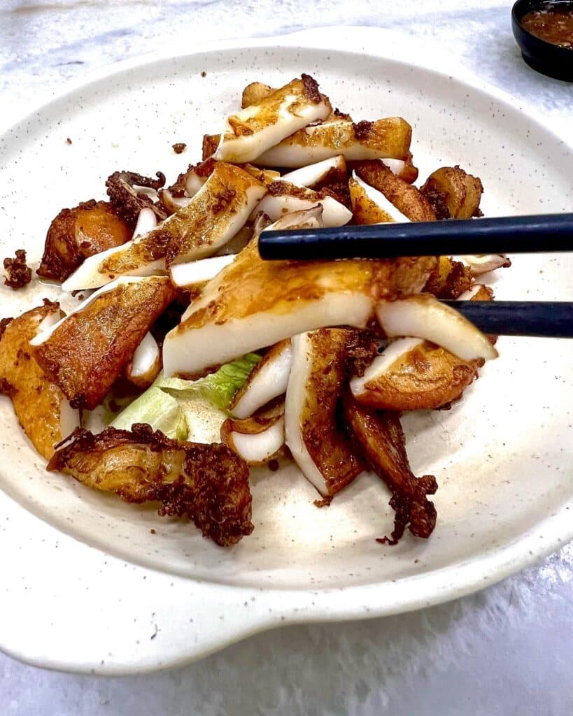 而干肉骨茶的烹饪更显匠心独运,经过精心熬煮的骨肉与药材同炒,封锁了药材的精华,让每一口都充满了滋补的力量。除此之外,「 一品滋补肉骨茶 」的炒肉根和炸青墨也非常值得一试。炒肉根以其香气四溢和柔嫩的口感,为肉骨茶增添了不同的风味层次;而炸青墨则以其酥脆的外壳和弹牙的肉质,展现了炸物的绝佳味道。