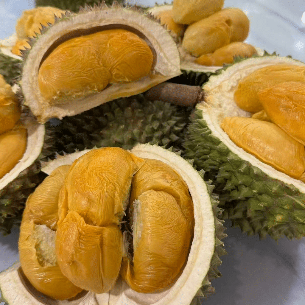 被称为“王中之王”的黑刺,是 新山榴莲哪里最好吃 的终极答案。它的果肉带有一抹诱人的橙色,入口即化,质地比猫山王更轻盈,却带有一种贵族般的优雅香气。