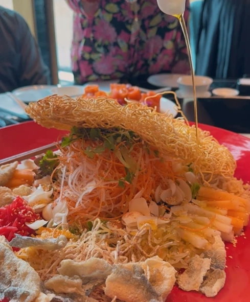餐厅提供多款捞生,包括豪华海鲜捞生、三文鱼与黑松露创意组合、金沙软壳蟹鱼子酱捞生,以及适合素食者的斋鲍鱼捞生。无论是大家庭团聚,还是公司部门聚餐,这里的捞生都以精致摆盘、丰富配料和清爽酱汁著称,既能感受新年的热闹氛围,也满足多样化口味需求。