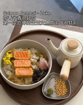 三文茶泡饭是招牌之一,鱼片厚薄适中,表面微焦带油光,米饭扎实又带汁,咬下去有弹性。Chicken katsu curry don咖喱香味扑鼻,鸡肉外层酥脆,里面肉质湿润多汁,咖喱酱浓郁但不腻,带着淡淡甜味,让口感层次分明。甜品tiramisu则是轻甜的奶油夹层,中间浸透咖啡液的手指饼干带一点微苦,表层可可粉微焦,吃起来层次丰富,每一口都像慢慢延长周末的舒适感。