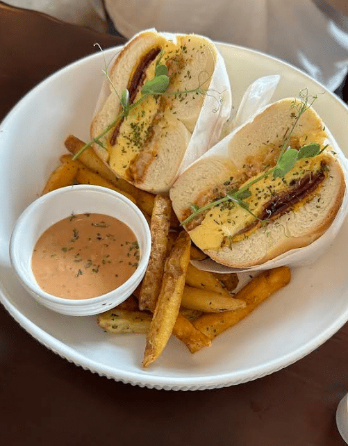 如果你中午过去,大概会看到几种人群:有一两桌朋友在聊天,有人独自带笔电坐在角落,还有人刚从外面散步回来,点了一份 drink 坐下来慢吞吞啜一口。背景音乐是轻 Soft 的 rhythm,不会把声音推得太高。服务生走动时脚步不快,上餐的节奏也不会让你觉得急。这种“慢一点”的 vibe,让整个空间像缩小的城市角落,不像那种很吵的热门地标,而是更像周围住户的日常 hangout。
